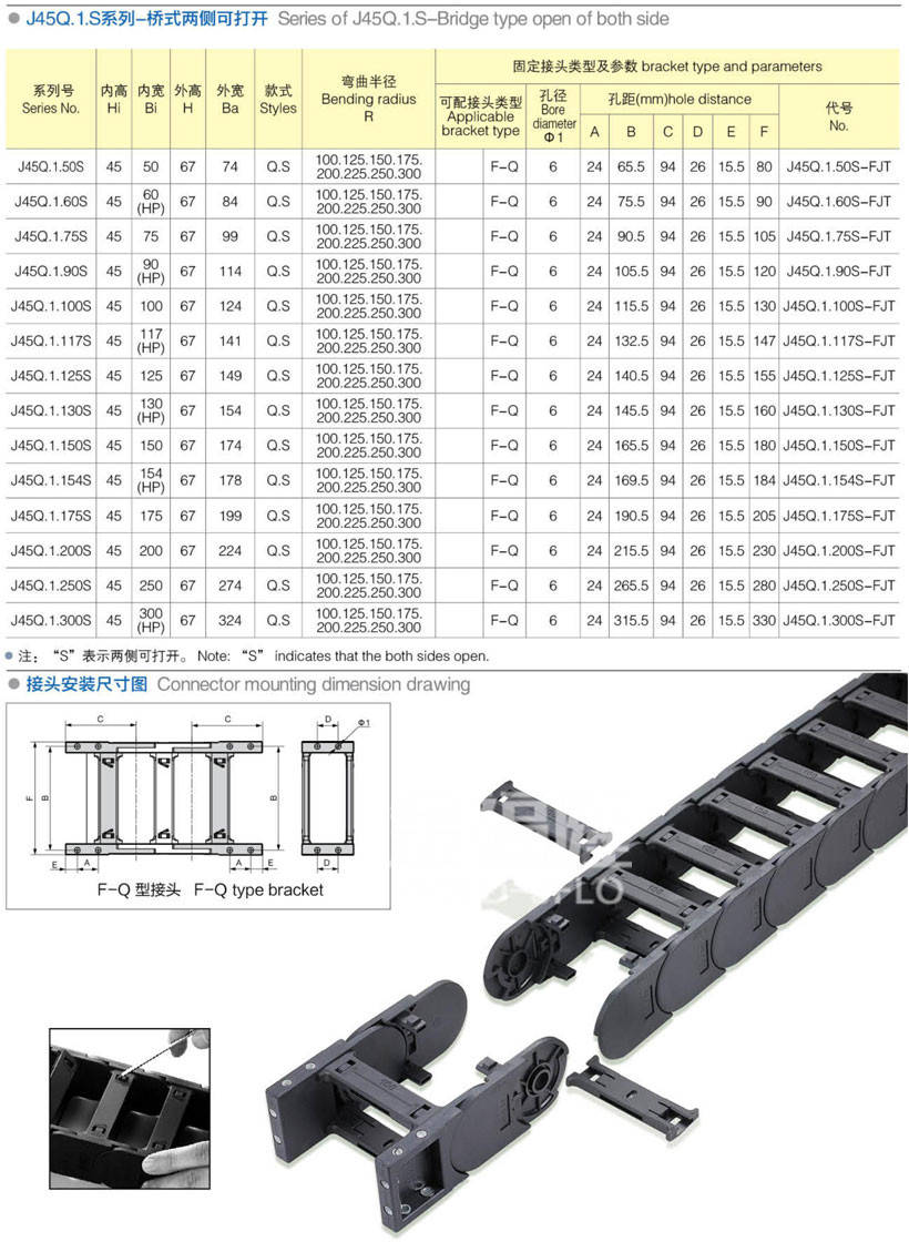 • J45Q.1.S系列-橋式兩側可打開拖鏈