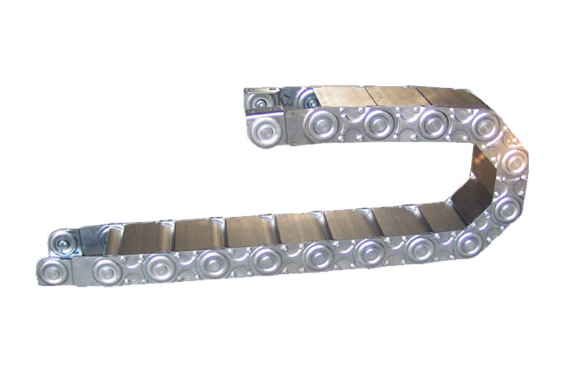 適用于所有的傳動方式,可隨意加長和縮短。TLG型鋼制拖鏈可承載數量多,重量大的電纜及油管,自由懸置長度大,支撐板可依顧客需要制作,使用于工作母機,移動機械等.此外,可通過改變銷軸獲得改變彎曲半徑.