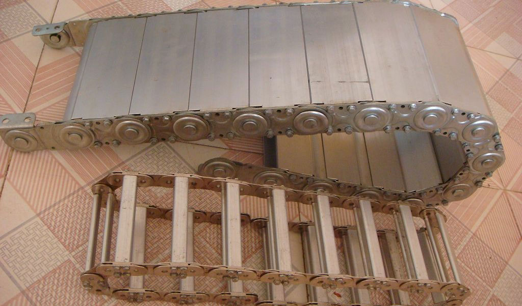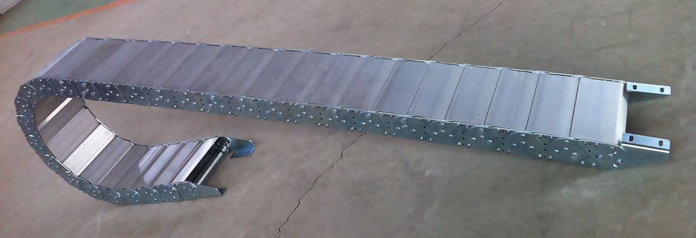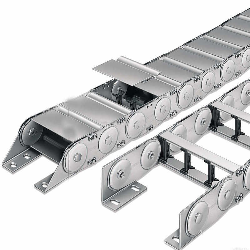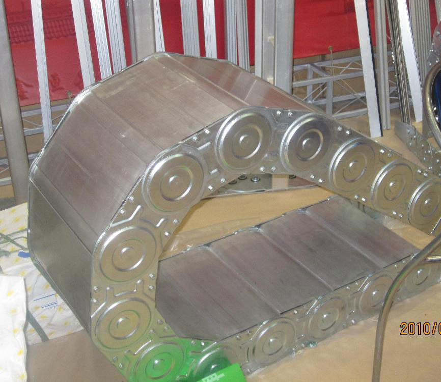 (2)鋼制拖鏈的每一節都能打開,便于安裝和維修。運動時噪音低、耐磨,可高速運動。