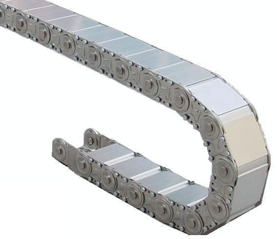 全封閉鋼鋁拖鏈一般應用在機床機械等的電纜、油管、氣管、水管、風管上,起牽引和保護作用。